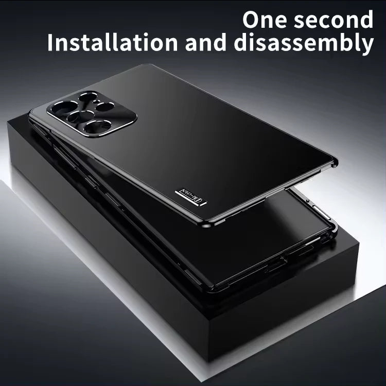 This luxury magnetic metal case from Samsung safeguards your device with superior protection in a stylish, lightweight design. The sleek aluminum body is encased with a magnetic closure to keep your phone secure. Reinforced corners provide corner-to-corner defense against drops and bumps. A raised bezel lifts your phone screen off flat surfaces, shielding it from scratches.